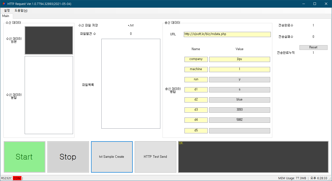 생산 설비 데이터를 수집하여 웹서버로 전송하는 프로그램