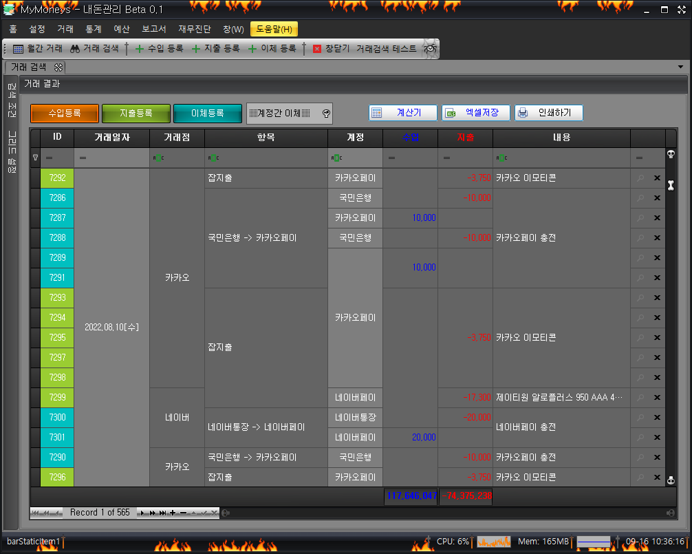 회계 프로그램에 포함된 현금 입출금 기능을 주 기능으로 만든 프로그램.